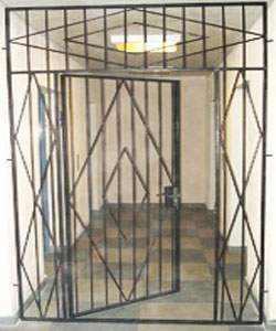 Дверь-решетка металлическая проста, функциональна, красива. Цена ее небольшая. Надежна, хоть и уступает в этом цельнометаллическим дверям. Выполняются эти двери в городе Миасс: